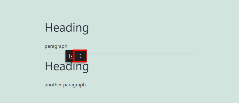 用鼠标抓住拖动工具将其移动到内容中的任何位置。将出现一条蓝线,指示在您四处拖动区块时将放置该区块的位置。