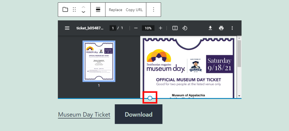 显示内联嵌入允许您启用或禁用PDF预览。它默认启用。禁用它只会显示标题和下载按钮。此示例显示它已禁用。