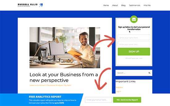 不要只在侧边栏中添加一个注册表单。相反,为您的用户提供大量使用多个电子邮件订阅表格进行注册的机会。