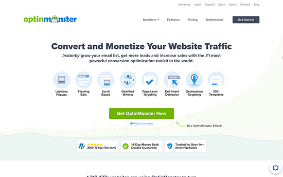 Mailchimp允许您创建基本的电子邮件注册表单。但是,这些表单很难自定义,并且没有很多定位和个性化选项。这就是OptinMonster的用武之地。它是市场上最好的转换优化软件,可帮助您轻松地将网站访问者转换为订阅者。OptinMonster与您的Mailchimp帐户集成,并附带数十个漂亮的模板和强大的活动构建器。