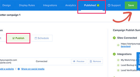 您现在可以保存和发布您的OptinMonster活动并关闭表单构建器。