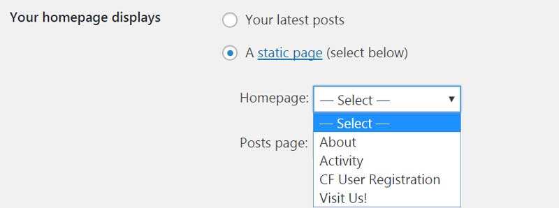 WordPress首页有两个主要选项。要查看它们,转到您的仪表板并选择“设置”>“阅读”。