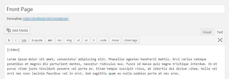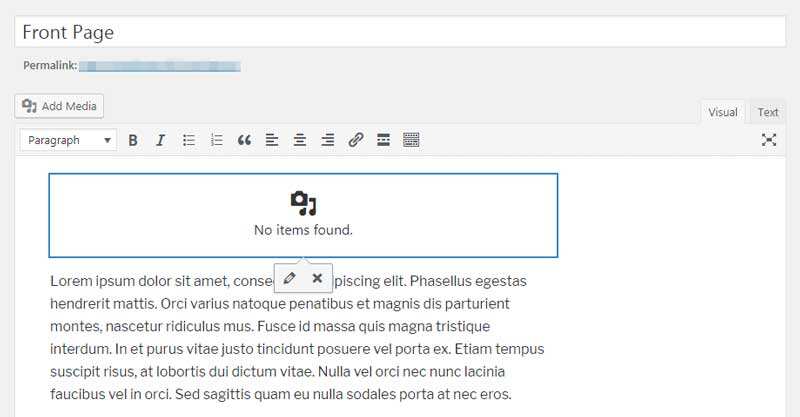 只需复制并粘贴您要添加到编辑器中的短代码。例如,您可以使用[ gallery ]短代码将您的首页变成照片库,或使用短代码[ video ]通过自定义视频介绍您的网站(注意将短代码[]的空格去掉)。如果您切换回Visual选项卡,您将看到一个新空间供您自定义短代码添加的功能: