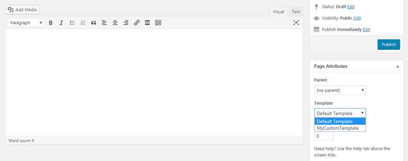 您应该会在模板下拉菜单中看到您的新模板。选择它,当您发布(或更新)页面时,您的自定义模板将被应用。