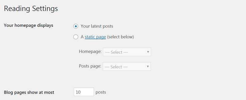 在这里,您可以选择在首页上显示您的最新帖子或使其成为静态页面。如果您的博客是您网站的主要焦点,则显示最新文章可能是您的首要任务。您可以通过更改博客页面最多显示字段中的数量来设置将显示的文章数量。