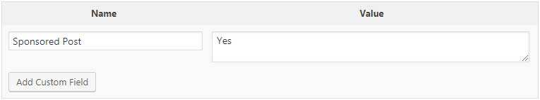 为您的元数据选择一个名称。它可以是任何东西,但最好保持简短和描述性。继续上面关于在特定文章上显示披露声明的示例,我们将其称为Sponsored Post。然后我们将在值框中添加一个简单的“是” ,表明此特定文章是赞助的。