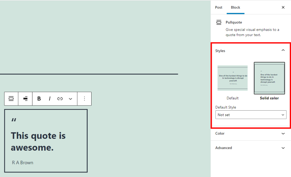 - 尝试两种样式,默认样式和纯色样式,看看哪种样式最适合您的内容。使用纯色并更改背景颜色以突出显示。
