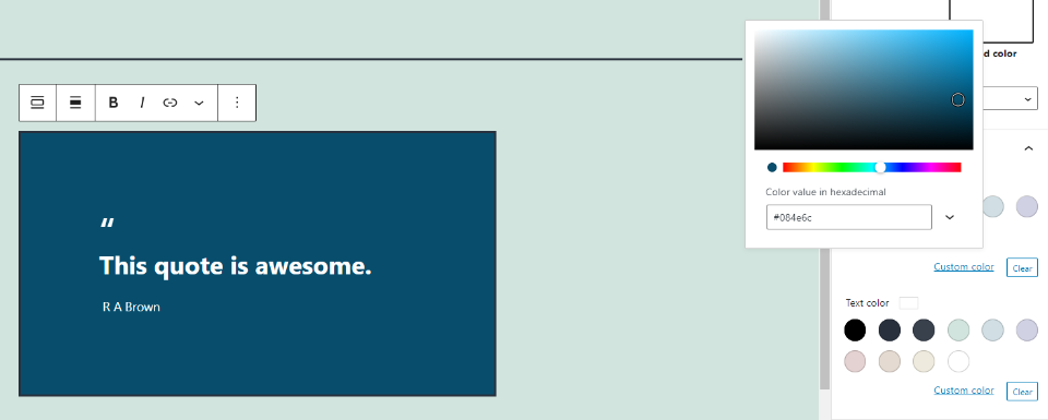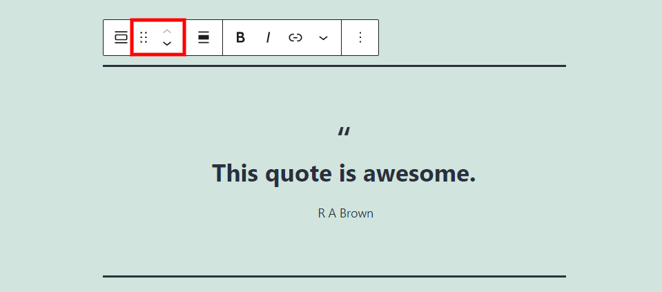 引文区块工具栏位于区块上方。当您选择块时它会出现。让我们仔细看看。