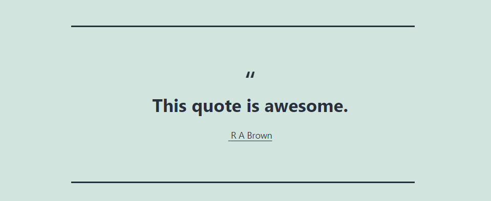 您的引用显示在两条水平线之间,并在其上加上引号。默认设置以大字体显示引文,而引文则以常规粗细的较小字体显示。