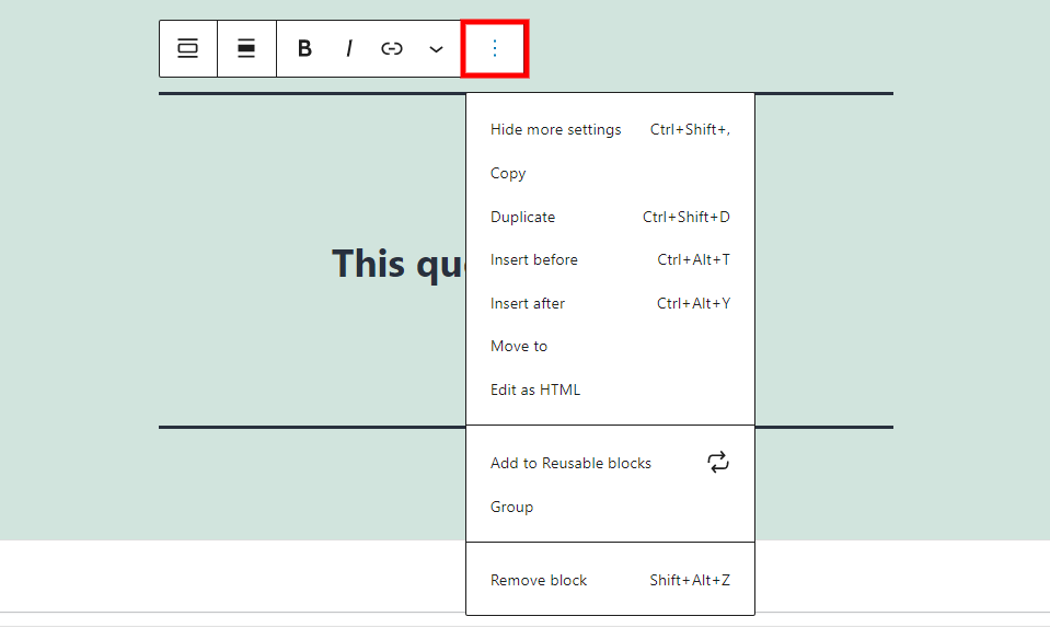 - 添加至可重用区块– 将引文区块添加到您的可重用区块中,使其易于重用。