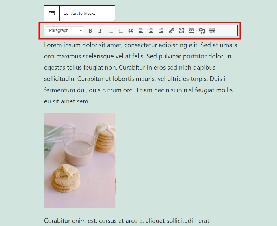 工具栏提供了经典编辑器中的所有TinyMCE工具,允许您设置文本格式、添加媒体等。永久使用此工具栏编辑所有内容。