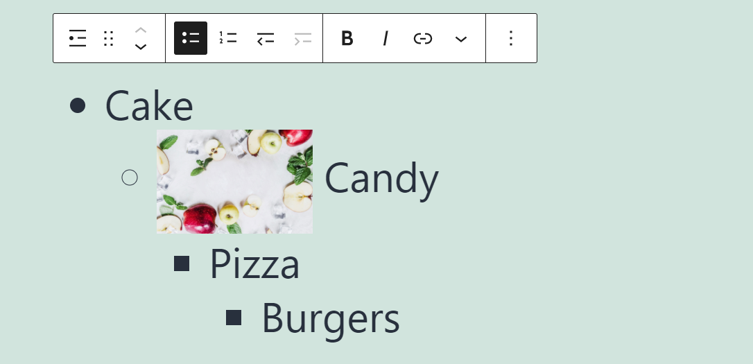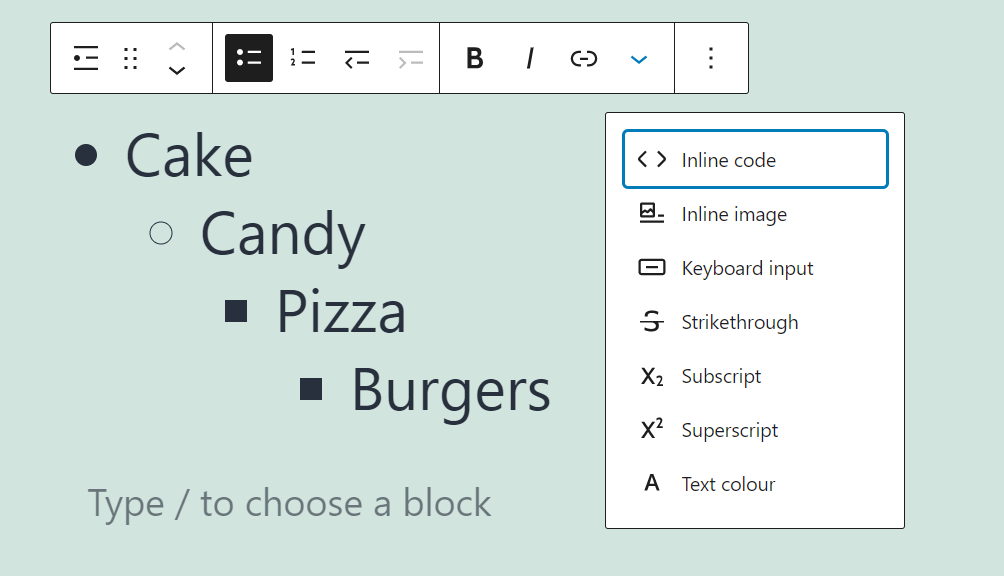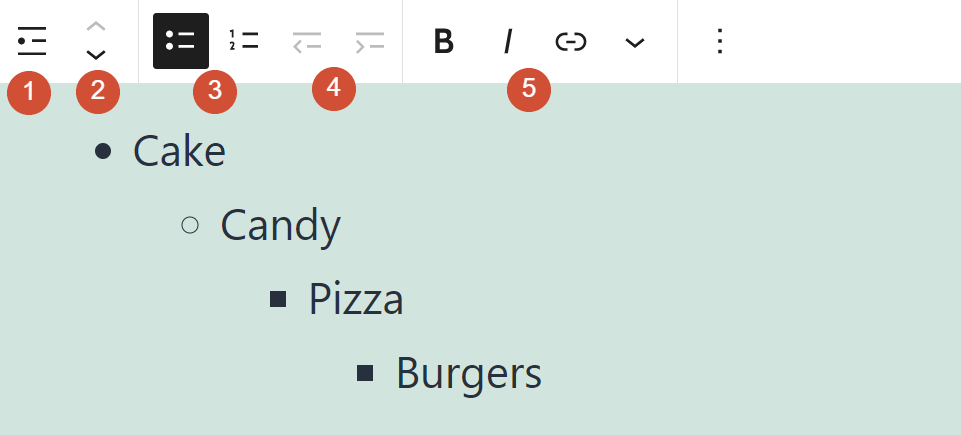 向列表区块添加格式的工作与任何其他基于文本的元素非常相似。您可以将特定条目或什至只是其中的一部分加粗或斜体,这同样适用于链接。