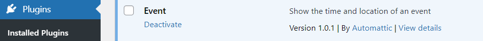 Automattic现代设计理念的精髓在这个插件中如火如荼。它简单、易于使用且时尚。只需导航到 管理面板中的插件并搜索或上传即可安装它。然后它将作为Event出现在您的插件列表中 。