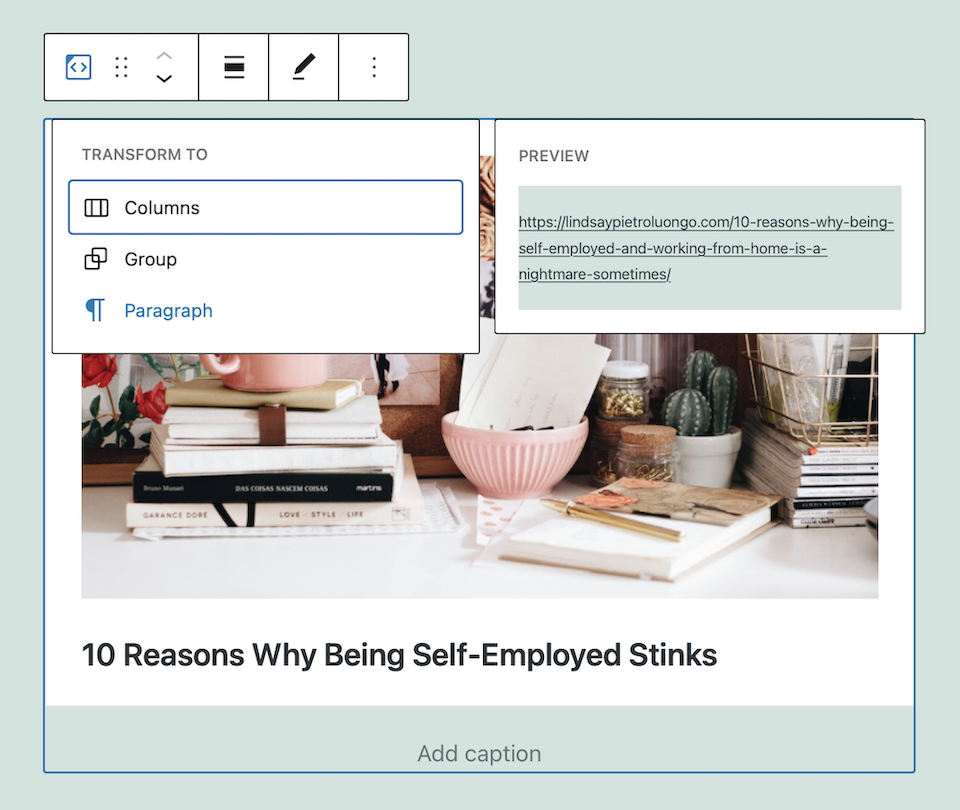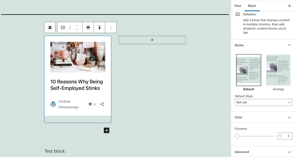 虽然WordPress嵌入区块设置按预期工作,但有些人比其他人更喜怒无常。例如,对栏目和组进行试验就有点头疼。为不同的区块样式找到和调整附加设置需要大量的反复试验,有时按钮没有像我想象的那样响应。最终,我能够找到并编辑所有内容,但并非没有挫败感。