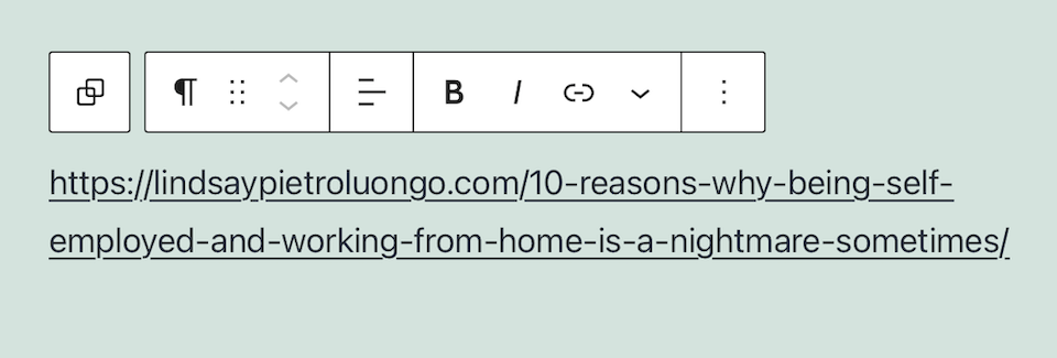 如果您使用的是经典编辑器,则只需将WordPress文章中的链接复制并粘贴到文章或页面中。(您也可以在Gutenberg中执行此操作。)这是添加后的样子: