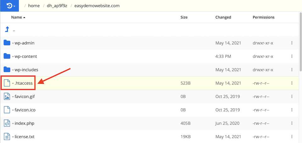 在您的FTP客户端中找到.htaccess文件(找不到?),下载并打开它。
