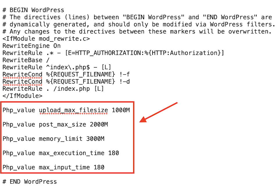 Php_value upload_max_filesize 1000M Php_value post_max_size 2000M Php_value memory_limit 3000M Php_value max_execution_time 180 Php_value max_input_time 180