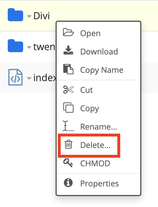 右键单击该主题文件夹并从弹出菜单中选择删除。