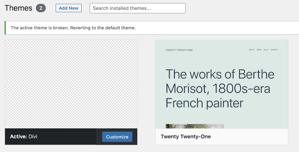 如果“您确定要这样做吗”错误消失了,则意味着您的主题导致了问题,您应该考虑安装一个新主题。如果错误仍然存在,您可以通过FTP客户端上传您在该过程开始时下载的文件夹来重新安装旧主题。