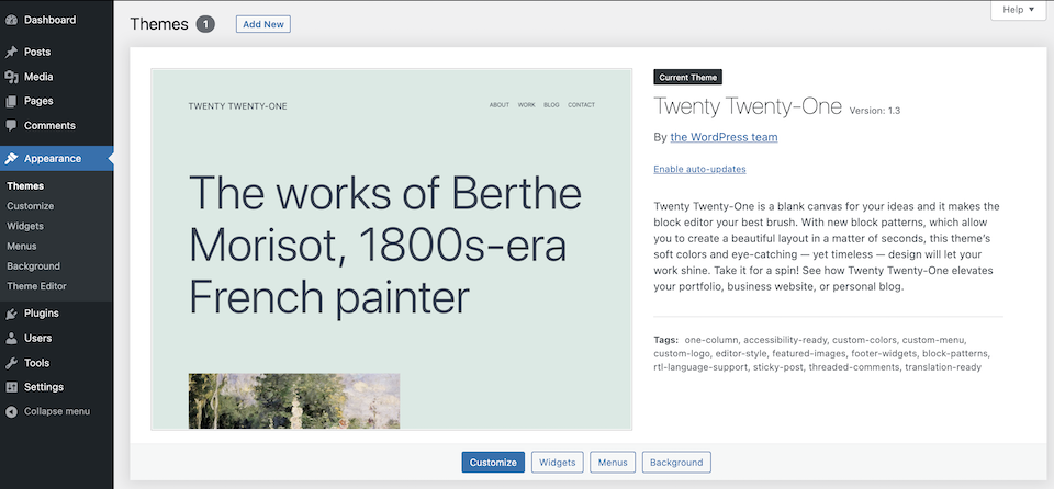 或者,WordPress会自动启用自带的主题。如果这还没有发生,请刷新页面,您可能会看到如下内容:
