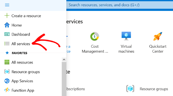 打开 Azure 门户后,继续并单击左侧边栏中的“All Services”选项。