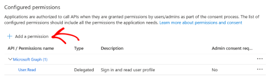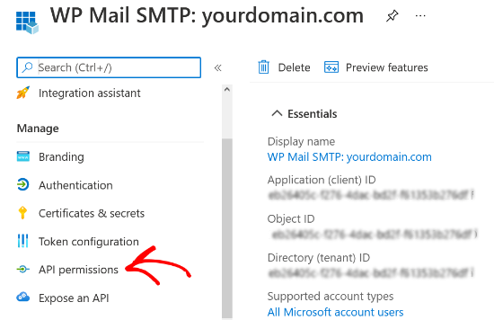 在 WP Mail SMTP 中设置好应用 ID 和应用密码后,下一步就是 API permissions。