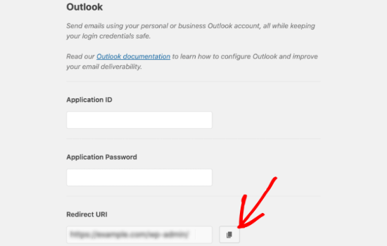 对于第二个字段,您必须输入 WP Mail SMTP Outlook 设置中给出的重定向 URI 地址。