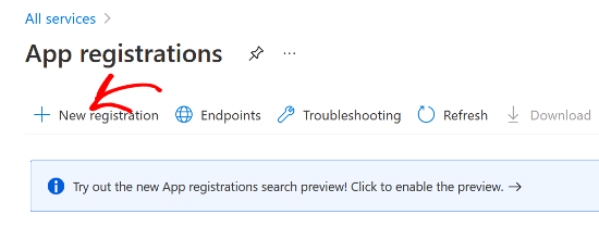 之后,您需要单击“+ New Registration”按钮来创建您的应用程序。