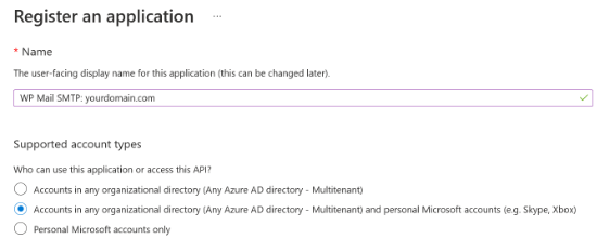 接下来,输入应用程序的名称。这是供您自己使用的,可以随时更改名称。例如,您可以将其命名为“WP Mail SMTP: yourdomain.com”。