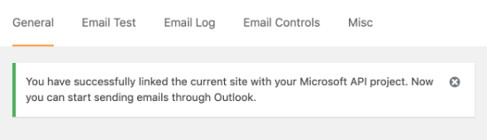 之后,将被重定向回 WP Mail SMTP 设置页面,顶部会出现一条通知,表明您已准备好通过 Outlook 发送电子邮件。