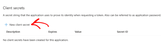在下一个界面上,您可以跳过 Certificates 证书部分并向下滚动到 Client Secrets 部分。然后单击“+ New client secret”选项以添加客户端密钥。
