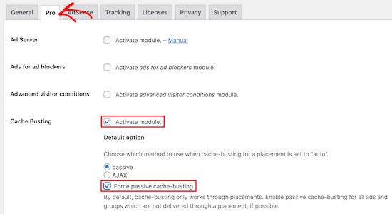 接下来,点击“Pro”菜单选项,在当前界面启用“Cache Busting”选项,这将打开广告组的刷新率。