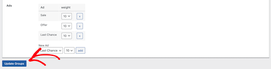 之后,选择要添加到广告组中的广告。完成后,请确保单击“Update Groups”以保存更改。