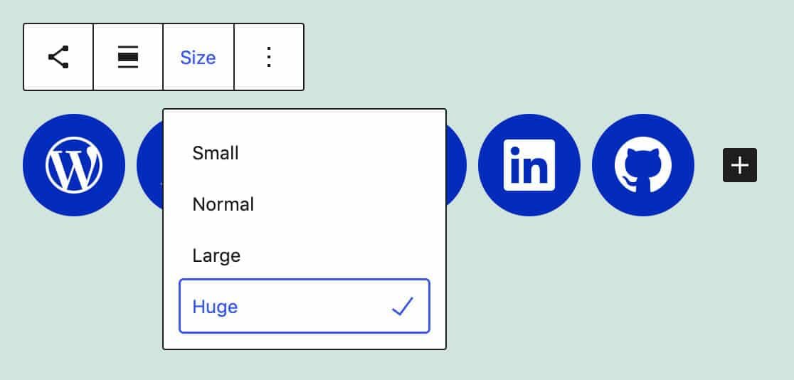 现在,当您插入“社交图标”区块时,也可以调整社交媒体图标的大小。