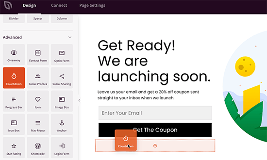 只需将“Countdown”模块拖放到页面预览中您希望显示的位置即可。