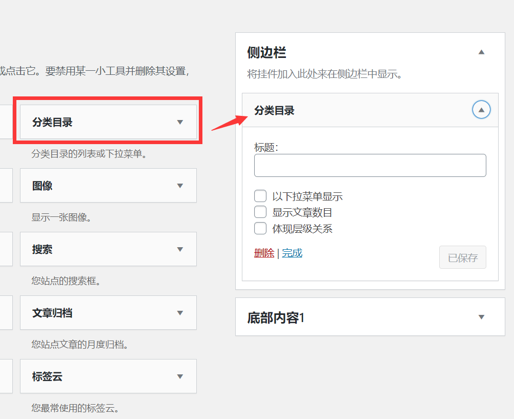 提示:仅当您分配了至少1个发布文章至分类目录时,该分类才会显示在列表中。