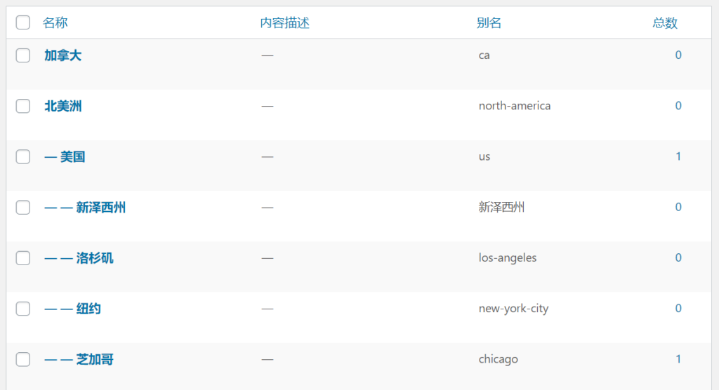 在这里可以使用子分类。“美国”可以成为父级分类,而城市可以成为子类别。
