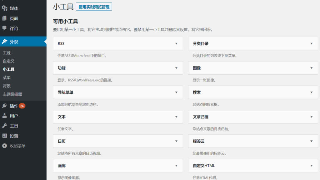 您可以将小工具添加到WordPress边栏或页脚中以显示分类目录列表。在WordPress管理后台中,转到外观»小工具。