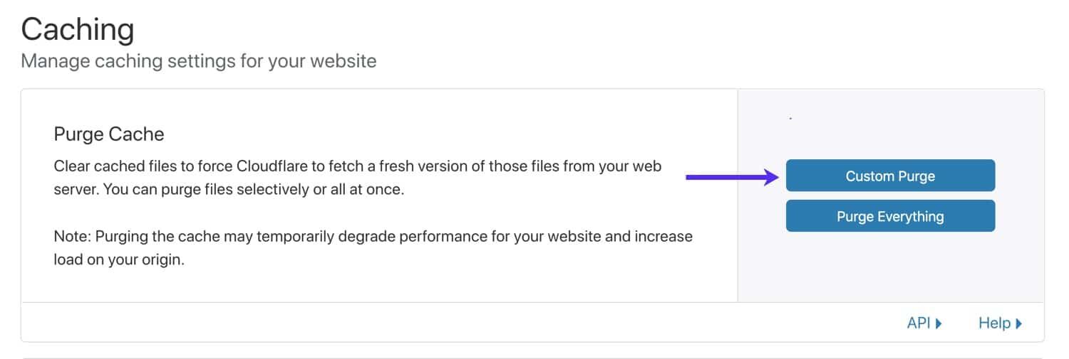 第4步:然后清除Cloudflare缓存。而且,如果您将网站置于开发模式,请确保将其设置为活动状态。