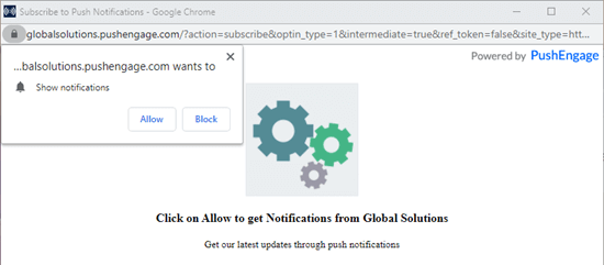 注意:无法更改浏览器弹出框中显示的内容。它将始终带有“显示通知”文本以及“允许”和“阻止”按钮。