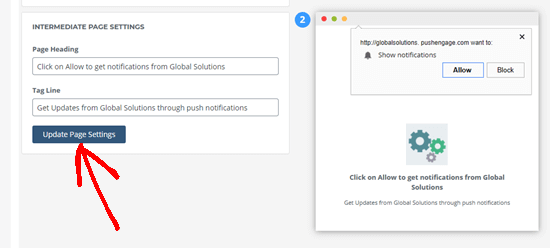 在此之下,您可以更改中间页面上显示的消息,这是用户首次点击“Allow”后出现的页面。