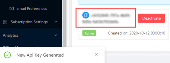 即可生成一串适用于网站与PushEngage对接的API密钥。
