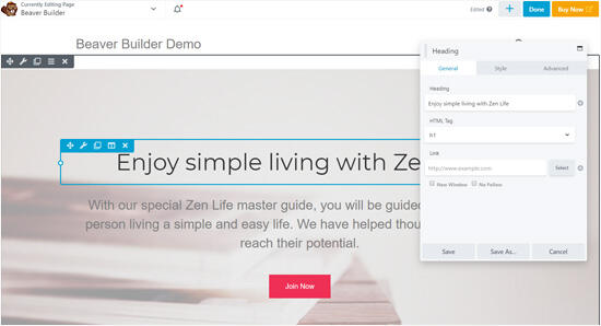 而且,下面是最好的页面构建器之一Beaver Builder,下图是使用它编辑页面时的界面: