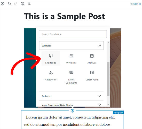 但是,更好的选择是直接使用WPForms Gutenberg块,而不是将表单shortcode粘贴到Shortcode块中。