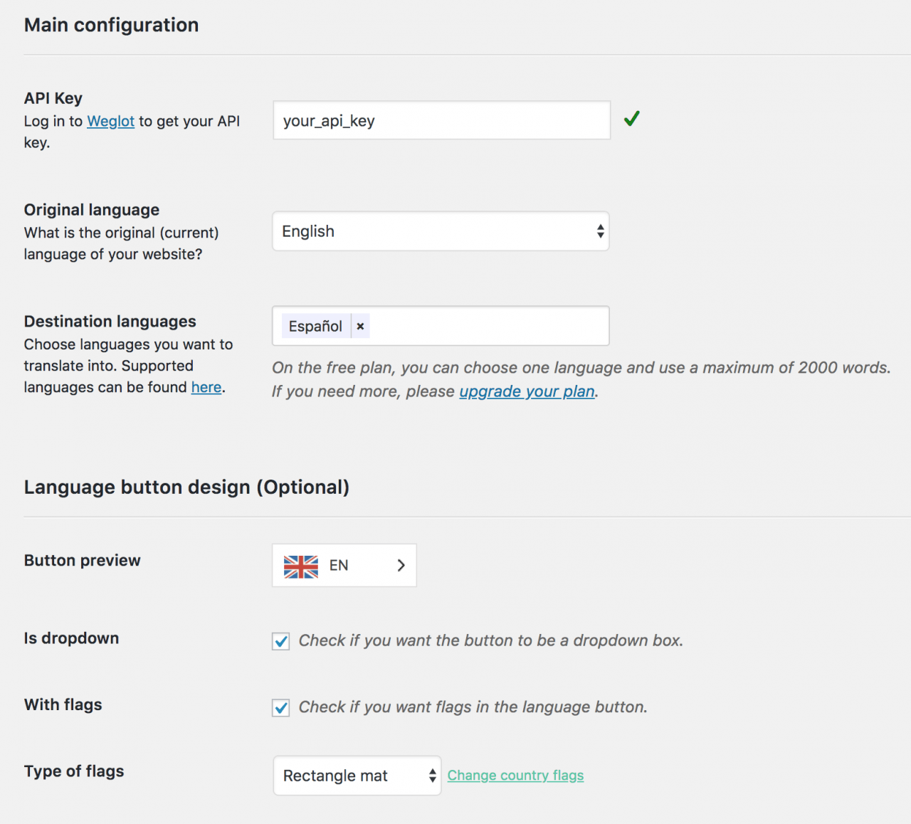 Weglot插件配置选项