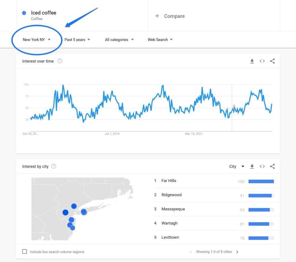 还有一种更有效的方法,就是利用本地趋势创建及时的、与那些对你的产品或服务类型感兴趣的人相关的内容。例如,一家咖啡店可以利用本地搜索数据,锁定那些在夏季对冰咖啡感兴趣的人。