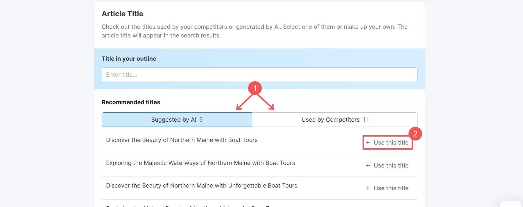 大纲生成器的第一个主要方面是搜索引擎优化标题。您有三种选择: