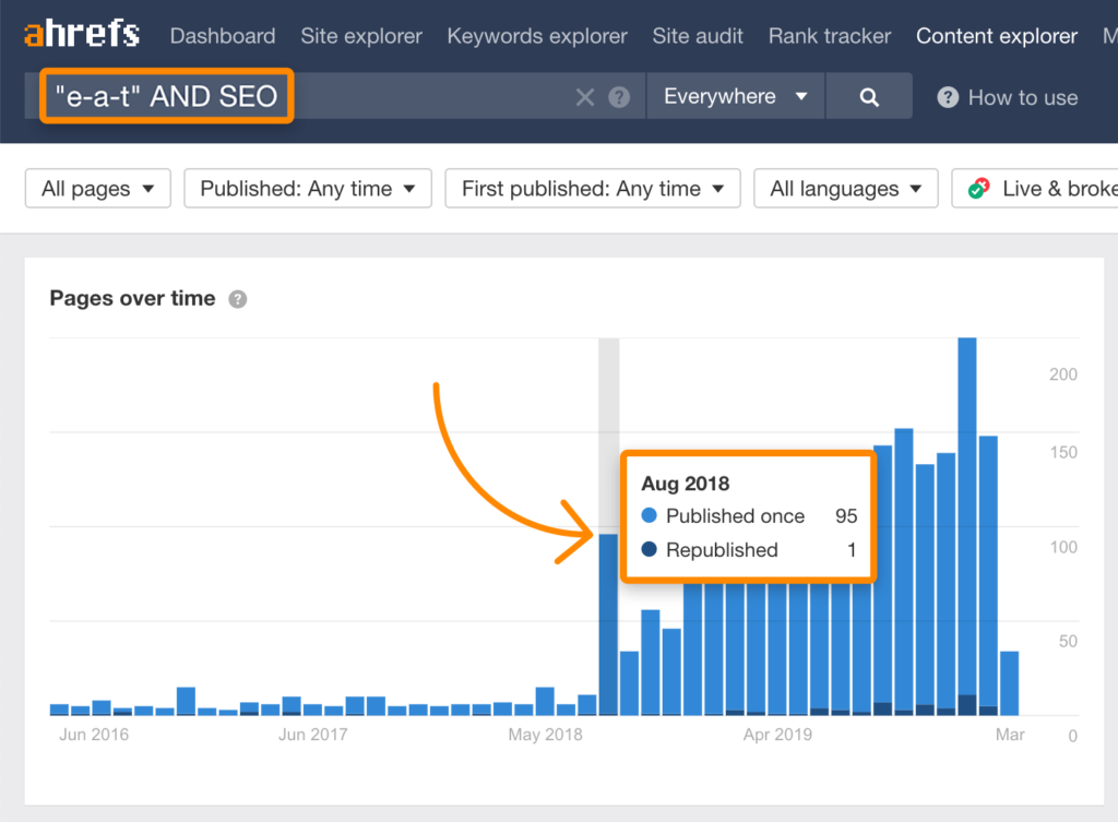 人们在2018年8月开始谈论E-A-T,此后在数百篇SEO文章中都提到了它。