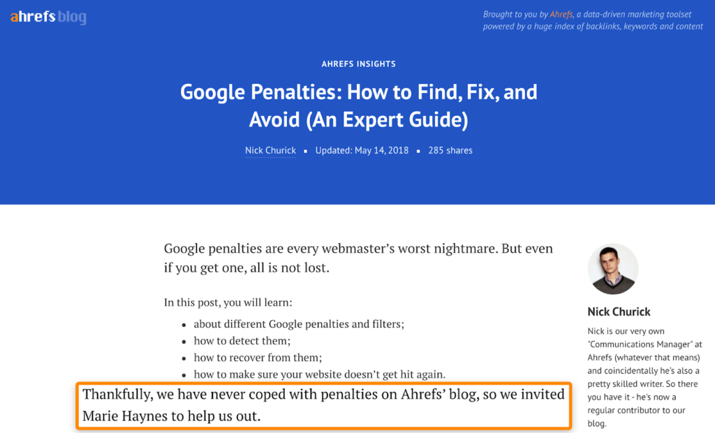 相反,你可以雇佣那些在业内有良好记录的人,或者那些已经因创造高质量的主题内容而闻名的人。