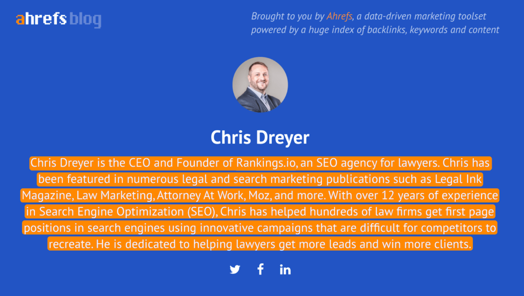 大多数人不喜欢吹牛,但当涉及到向谷歌展示E-A-T时,这正是你应该做的。如果你有博士学位,在知名的行业会议上发表过演讲,或者获得过有声望的行业奖项,让世界(和谷歌)知道。
